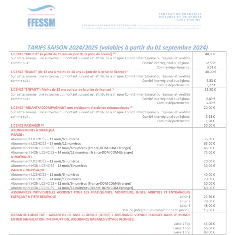 Les inscriptions débutent au 1er septembre 2025. À l'exception des premières séances en piscine (sessions d'essais en septembre), il est nécessaire d'être inscrit au club pour pouvoir participer à l'ensemble des activités proposées (piscine, plongées, sorties, séjours, etc.).